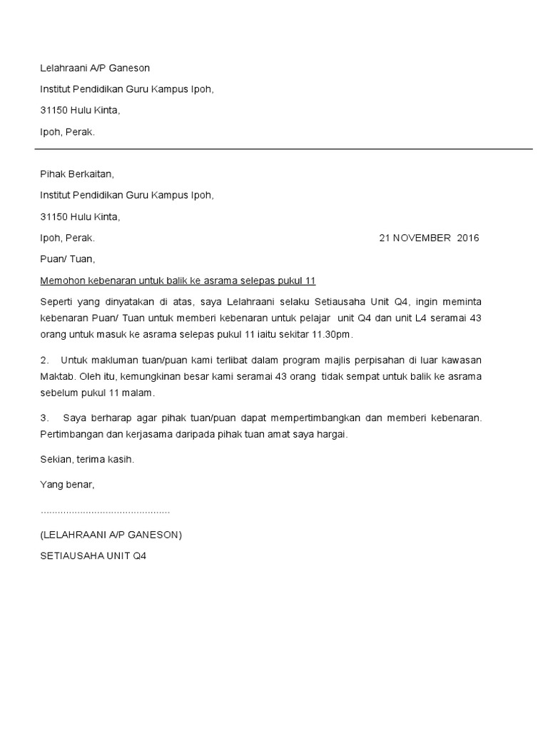 Surat kiriman rasmi permohonan mengadakan lawatan sambil. Pada saat ini dari penyidik timsus melakukan penggeledahan di tiga lokasi, di duren tiga nomor 58, kemudian di saguling, dan satu lagi di jalan bangka, tutur kadiv humas polri irjen dedi prasetyo di mabes polri, jakarta selatan,. Contoh surat berikut dikongsikan contoh surat kebenaran masuk ke hutan simpan yang anda boleh salin dan terus edit untuk kegunaan anda. Dianggap sebagai satu kesalahan disiplin.